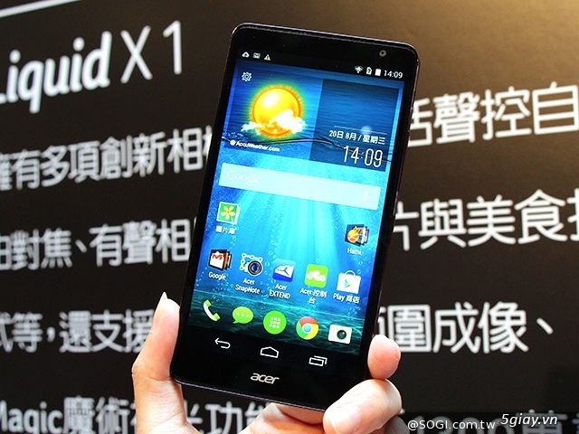 Cuối tuần trước Acer đã bán ra chiếc smartphone mới của mình - Liquid X1. Smartphone tầm trung này của Acer sở hữu màn hình 5.7 inches có độ phân giải 720p có vẻ là hơi thấp, nặng 164gr. Acer Liquid X1 chỉ bán ra ở Đài Loan.